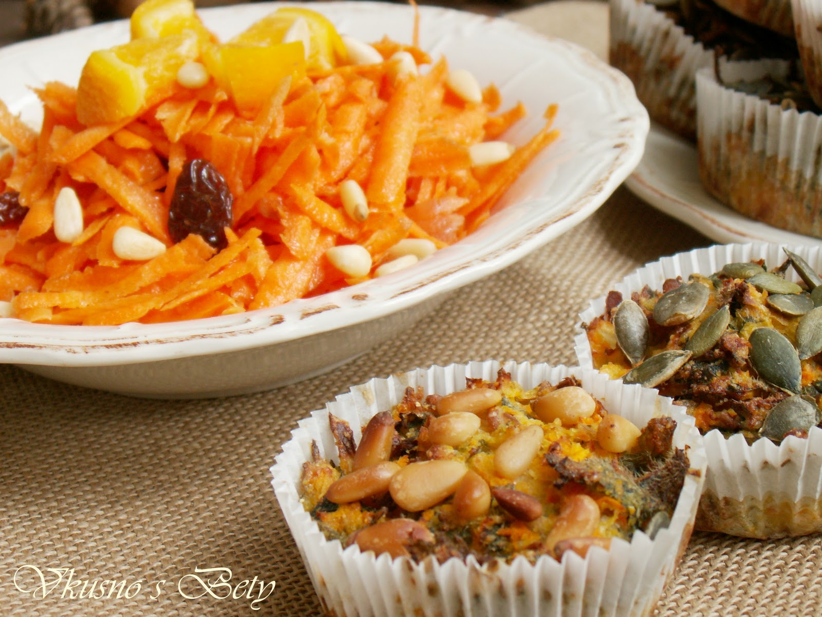 Безглутенови кексчета с коприва и елда и Салата от моркови с портокалов дресинг и кедрови ядки - Gluten-free muffins with Nettle and Buckwheat and Carrot Salad with Orange Dressing and Pine Nuts